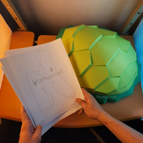 Estas plantillas descargables cuentan con 19 páginas con piezas las cuales puedes imprimir para realizar tu propio caparazón de tortuga, importante ver el video tutorial de como crear este diseño en nuestro canal de YouTube Momuscraft