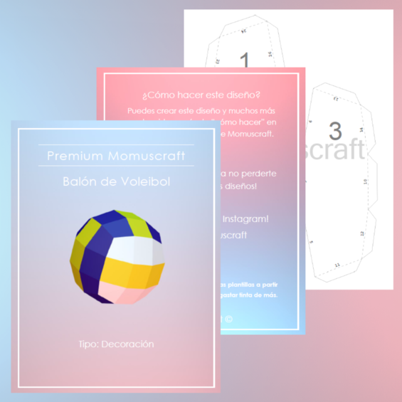 Estas plantillas descargables cuentan con 9 paginas con piezas las cuales puedes imprimir para realizar tu propia pelota de voleibol, importante ver el video tutorial de como crear este diseño en nuestro canal de YouTube Momuscraft