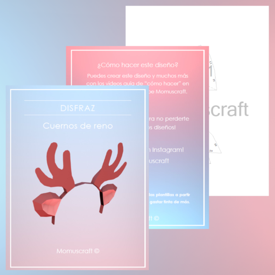 Estas plantillas descargables cuentan con 4 paginas con piezas las cuales puedes imprimir para realizar tus propios cuernos de reno, el diseño cuenta con unos cuernos y orejas de reno