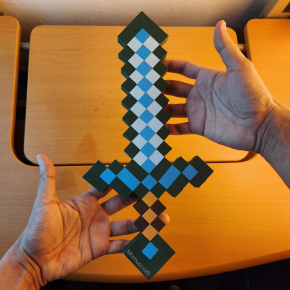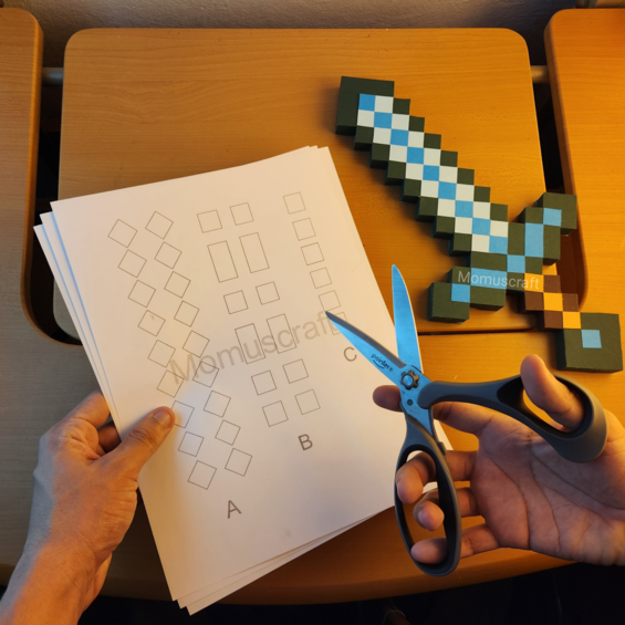 Estas plantillas descargables cuentan con 6 páginas con piezas las cuales puedes imprimir para realizar tu propia espada de Minecraft, importante ver el video tutorial de como crear este diseño en nuestro canal de YouTube Momuscraft