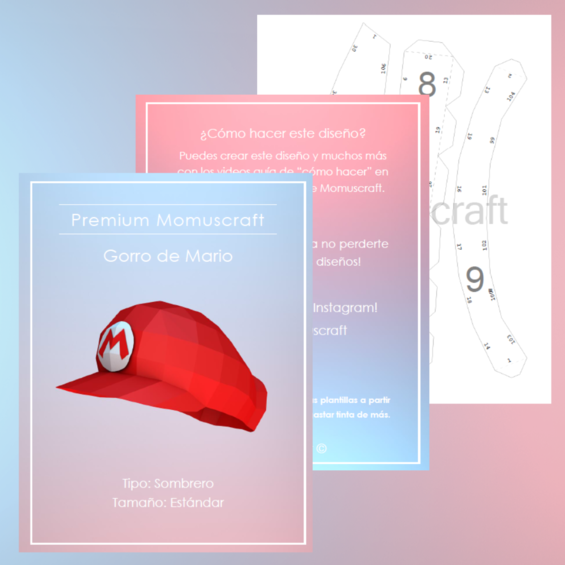 Estas plantillas descargables cuentan con 6 paginas con piezas las cuales puedes imprimir para realizar tu propio sombrero de Mario, importante ver las instrucciones basicas que están más abajo para empezar a crear el diseño.