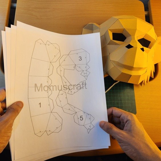 Estas plantillas descargables cuentan con 4 páginas con piezas las cuales puedes imprimir para realizar tu propia máscara de Mono, importante ver el video tutorial de como crear este diseño en nuestro canal de YouTube Momuscraft