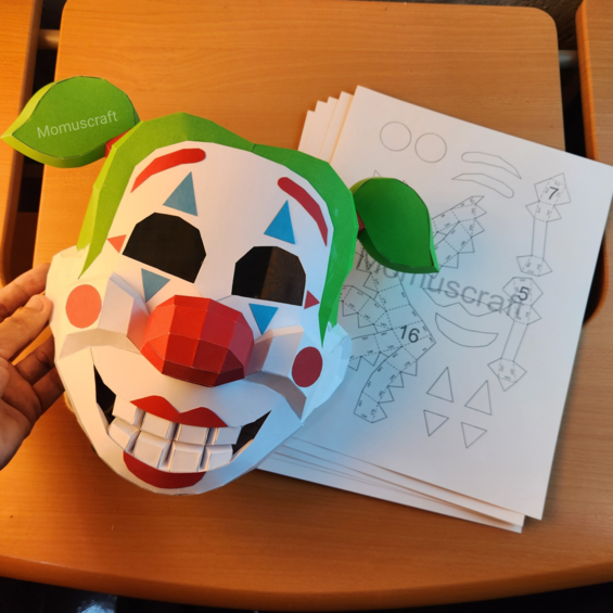 Estas plantillas descargables cuentan con 7 páginas con piezas las cuales puedes imprimir para realizar tu propia máscara de payasa, importante ver el video tutorial de como crear este diseño en nuestro canal de YouTube Momuscraft