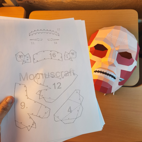 Estas plantillas descargables cuentan con 5 páginas con piezas las cuales puedes imprimir para realizar tu propia máscara de Titán Colosal, importante ver el video tutorial de como crear este diseño en nuestro canal de YouTube Momuscraft