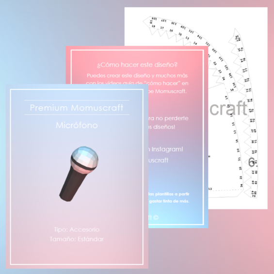 Estas plantillas descargables cuentan con 2 páginas con piezas las cuales puedes imprimir para realizar tu propio micrófono de freddy bear, importante ver el video tutorial de como crear este diseño en nuestro canal de YouTube Momuscraft