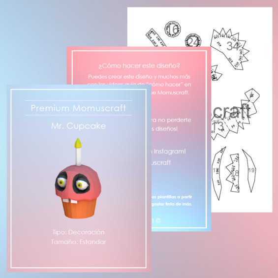 Estas plantillas descargables cuentan con 9 páginas con piezas las cuales puedes imprimir para realizar tu propio Mr. Cupcake, importante ver el video tutorial de como crear este diseño en nuestro canal de YouTube Momuscraft
