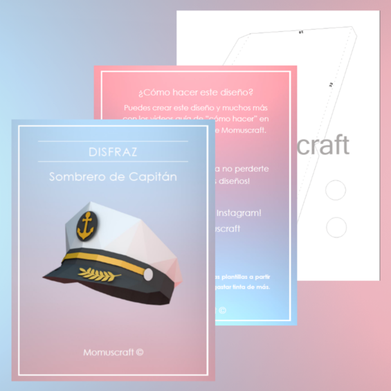 Estas plantillas descargables cuentan con 6 paginas con piezas las cuales puedes imprimir para realizar tu propio sombrero de capitán, tienes el video tutorial de como crear este diseño en nuestro canal de YouTube Momuscraft