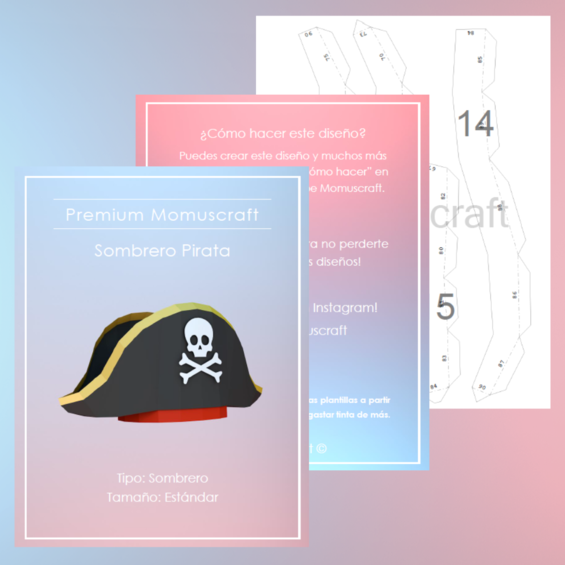 Estas plantillas descargables cuentan con 14 páginas con piezas las cuales puedes imprimir para realizar tu propio sombrero pirata, tienes el video tutorial de como crear este diseño en nuestro canal de YouTube Momuscraft